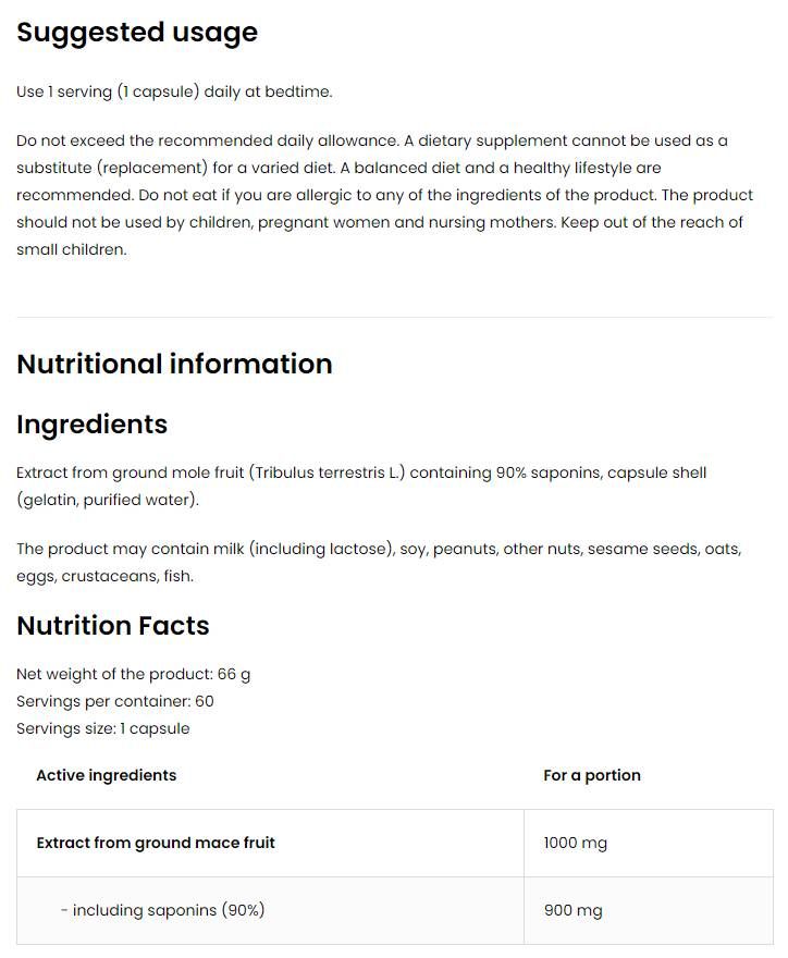 OstroVit Tribulus Terrestris 90 [60 капсули, 60 Дози]